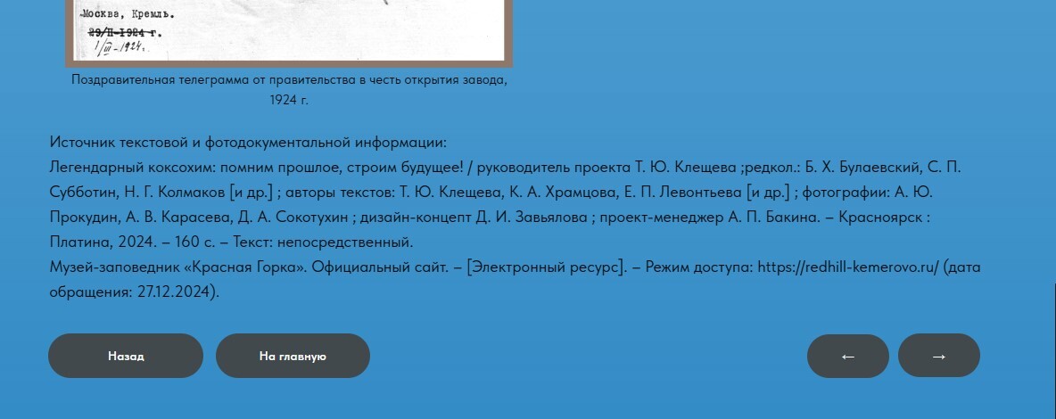 Кнопки навигации в виртуальной выставке «100 лет Кокс»