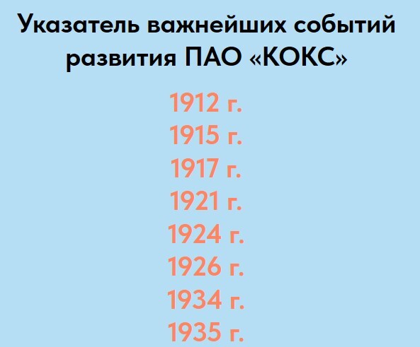 Экранная форма страницы Указатель важнейших событий развития ПАО «Кокс»